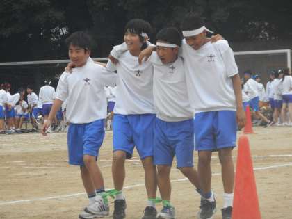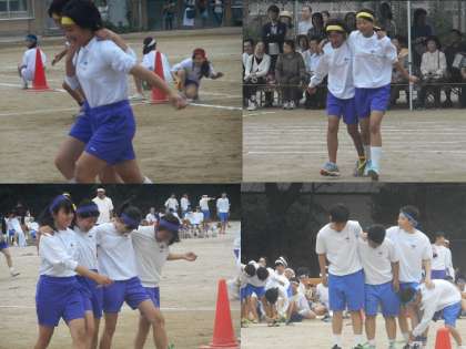 この競技は,グループ対抗で,最初は二人三脚,次に三人四脚,四人五脚と順に増えていく競技です。