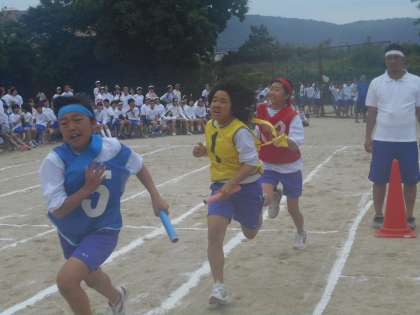 午前中最後の種目は男女の各学年クラス対抗リレーです。