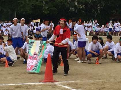 3年生の全員リレーです。先生の応援にも熱がこもります。