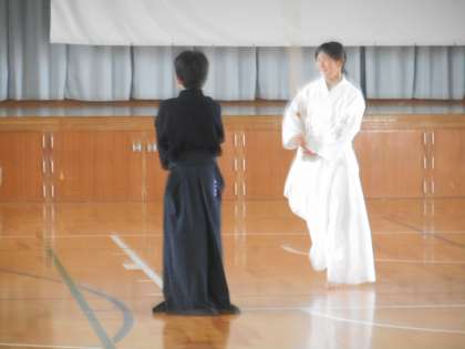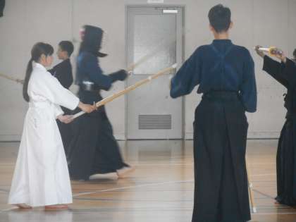 体育館では午前中は剣道部が活動しています。