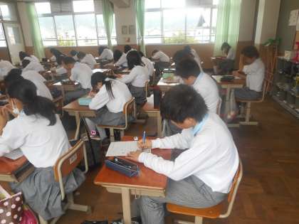 家庭学習のまとめテストのようすです。先週の家庭学習は英語でした。文法などみんな覚えているかな?