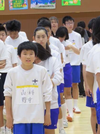 6月23日島津アリーナで育成学級合同球技大会が開催されています。山科中学校も元気に活躍しています。