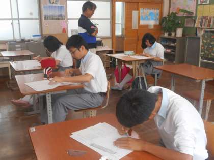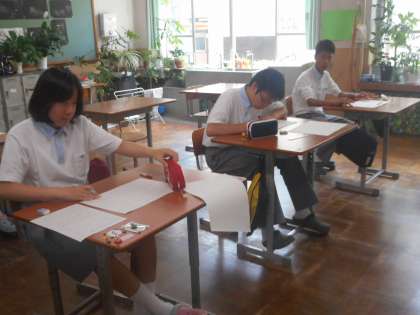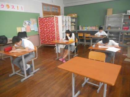 2時間目,数学のテストです。計算問題が主ですが,簡単なようでも余りのある割り算などもあり見直しが必要です。