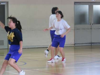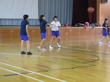 女子バスケット部も土日にカップ戦を控えて短時間練習しています。