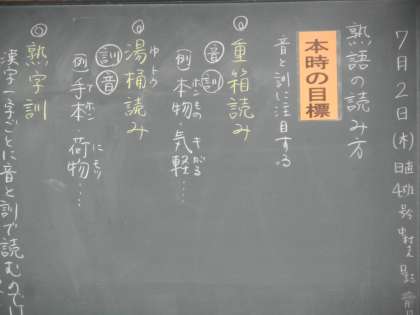 3年生の国語の時間。今日は熟語の読み方について学習しています。