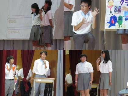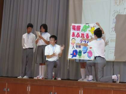 1年生と8組の発表です。どのクラスも大きな声でしっかりアピールできました。