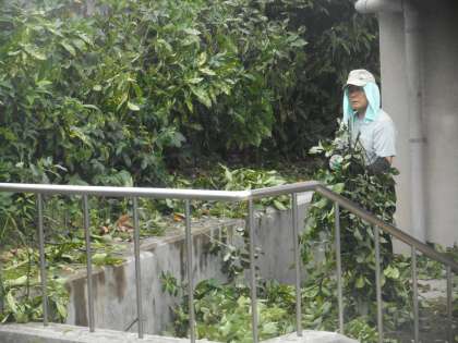 校門付近の樹木を管理用務員の森田さんにお願いして,「バッサリ」とやって頂きました。校門から体育館にかけて,学校の中がすっきり見えるようになりました。