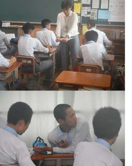 今日の授業は,養護の池田先生にも手伝って頂きました。主事の先生方にもお世話になり,ありがとうございました。