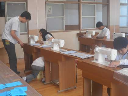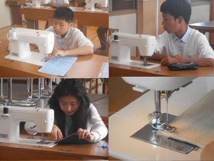 今日はミシンを使って縫う作業です。「どうするの」「上手く動かない」などいろいろ大変です。