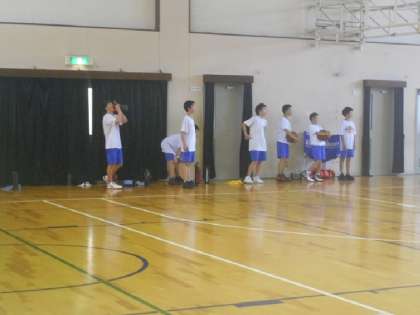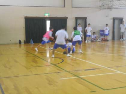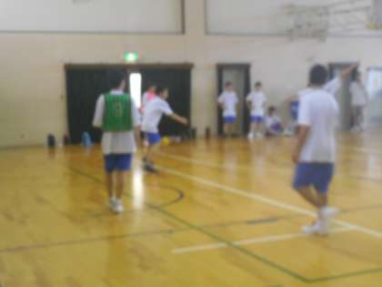 今日から懇談会なので,体育館も割り当てが前半後半になります。前半の体育館では男子バスケット部が活動しています。