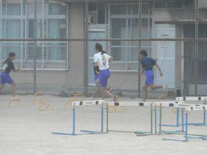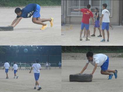 すでに夏季大会が終わった陸上部ですが,3年生の活動しています。駅伝大会を目指す3年生部員もいて,今月いっぱいは全員で頑張って活動するようです。