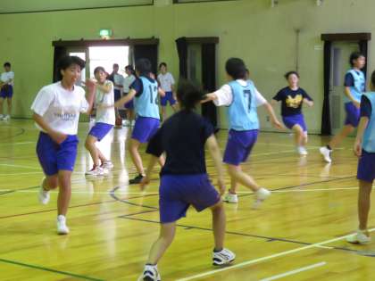 じっとしていても汗がしたたり落ちる暑い体育館です。週末の1回戦でいきなり強豪西賀茂中学と対戦する女子バスケット部です。最後の夏に向けて頑張っています。