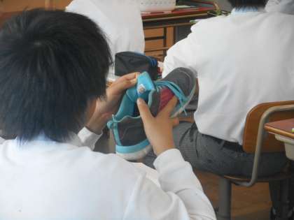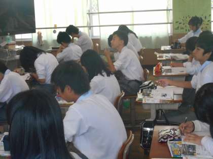 アジアの工業化のヒントとして,メイドイン○○○を探そうということで,みんな持ち物や特にスポーツシューズに多いということで,靴を脱いで熱心に探していました。メイドインチャイナ,ヴェトナム,インドネシア,パキスタンなど見つけていました。