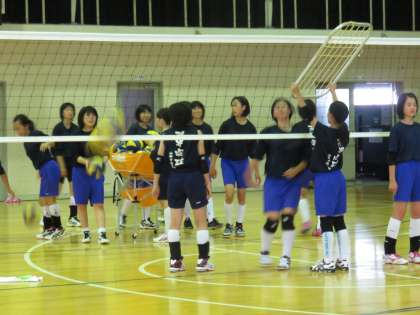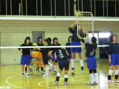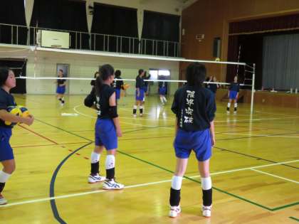前半の体育館は女子バレー部と男子バスケット部が練習しています。今日も体育館は蒸し暑く,汗で床をすぐに拭かなければならないぐらいです。