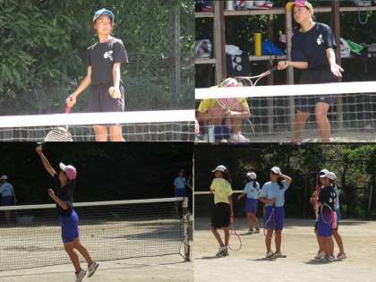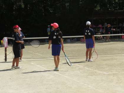 テニスコートはグラウンドの一番奥にあり,暑さの中たどり着くだけでも大変です。ちょうど太陽が真上で日陰が一番少ないときです。3年生が良く声を出して引っ張ってくれています。
