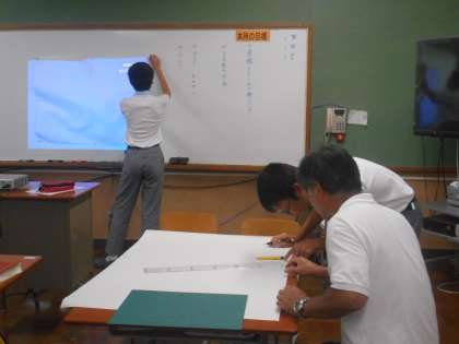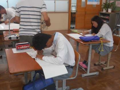 8組では,合唱コンクールに向けて,模造紙に歌詞を作っています。