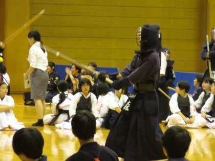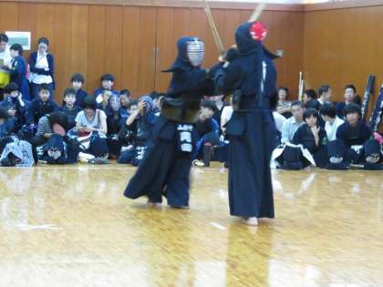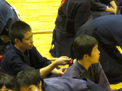 武道センターで剣道の個人戦が行われ,規定で1・2年生4人,3年生4人が出場しました。1年生は初めての大会で、緊張して作法を間違えたりと初々しい感じでした。