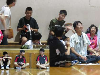 エアコンも扇風機もない暑い体育館ですが,熱心に応援しています。試合の進行と共に3年生を中心に次々に勝ち上がっていきます。