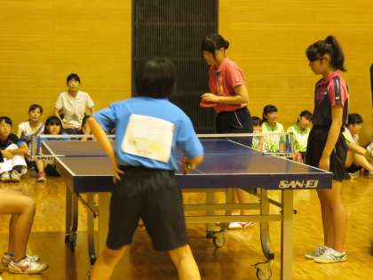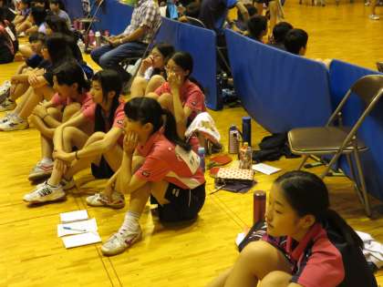 女子は1回戦で伏見中学と対戦です。初戦のシングルスに勝ち、勢いがつきました。