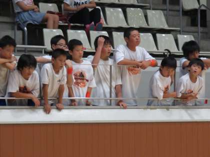後半、見ていて互角に責め合いますが,少しずつ点差が開きます。1年生もギャラリーから必死で声援を送っています。