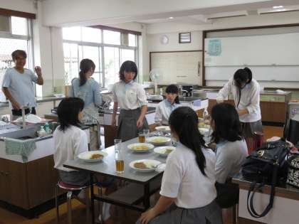 カレーができあがると,職員室にも声を掛けてくれて,教職員にも振る舞ってくれました。自分たちで育てた野菜ですから間違いなく美味しいですね。園芸部のみなさん,ごちそうさまでした。
