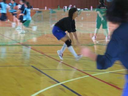 バレー部は昨日は練習試合だったらしく,今日は体育館で厳しくレシーブの練習をしています。今は基本の繰り返しが大事です。顧問の先生も声を張り上げて叱咤激励です。