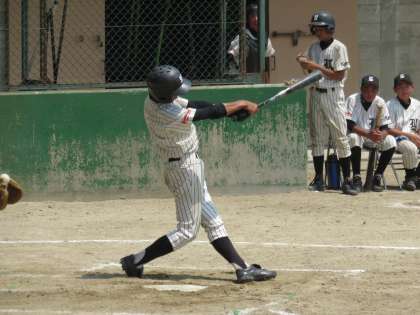 花山中学との試合では,幸先よく初回に3点をリードし,優位に試合を進めていきます。