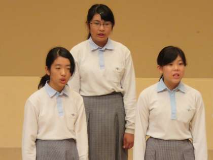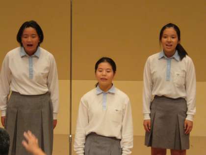 3年生を中心に,のびのびと歌ってくれました。私は一番後ろのカメラマン席(各校1名ここでしか撮影ができないので)でビデオカメラとデジカメを両方持ちながら聴き入ってました。私の座っているところまで,綺麗なハーモニーを響かせてくれました。