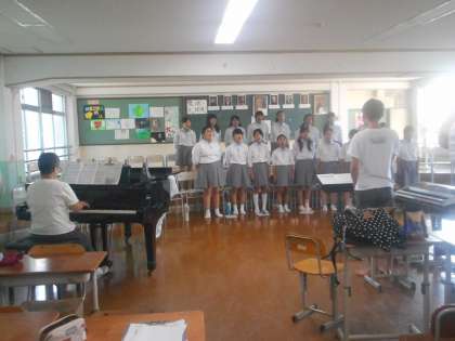 一昨年からよくコラボをさせて頂いている,合唱団アンサンブル=エバンの方に来て頂き,今年も山科駅地下の音の広場での合同出演と東部文化会館での合唱フェスティバル出演に向けての練習です。東部文化会館の方も練習を見に来て頂いていました。