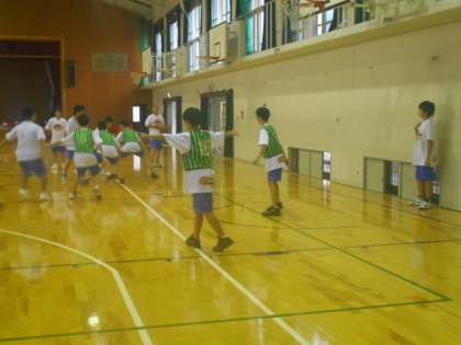体育館は男女のバスケットの割り当てです。どちらのクラブにも3年生が来てくれています。