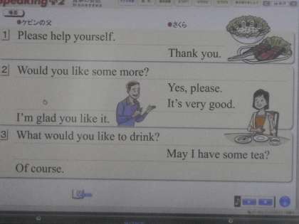 3年7組の英語のようす。デジタル教科書を使い,リピートして文を憶えていきます。