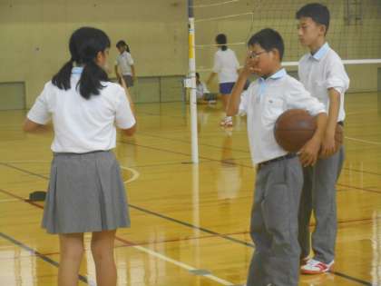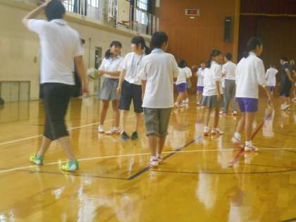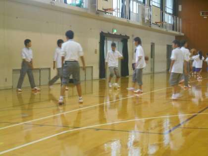 体育館でバレー,バスケット,フットサルと思い思いに遊んでいます。