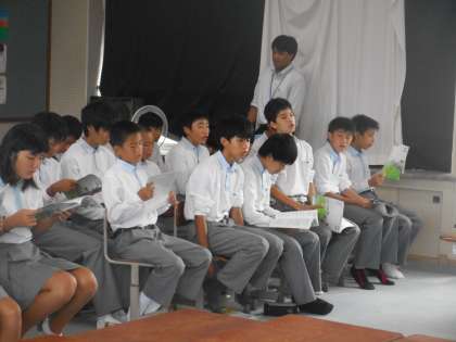 1年2組の音楽です。授業に集中するのも早く,チャイムと同時に始まります。