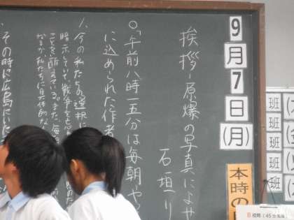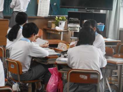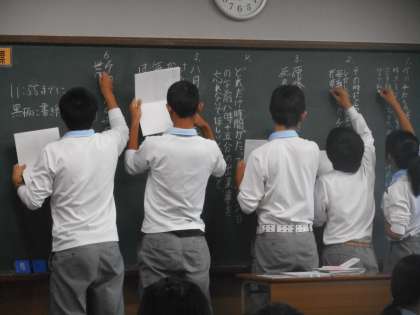 7組の国語,生徒たちがグループで話し合ったことを黒板に発表をしています。