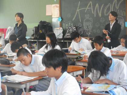 今日は教育委員会の先生と学生ボランティアの松浦先生も授業に入ってくださっています。
