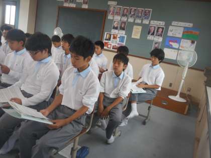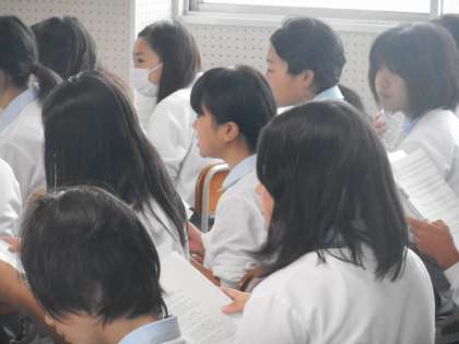1年1組の音楽。このクラスは女子の特にアルトが力強い印象でした。男子も声は大きいのですが,音程はこれからですね。