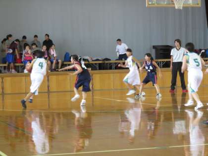 バスケットの新人大会のグループ予選が始まりました。女子は12日(土)、深草中学の会場で,向島中学と対戦しました。