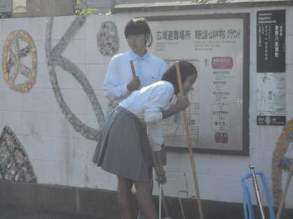 今週も生活委員が校門であいさつをしてくれています。陸上部も朝の清掃をしてくれています。