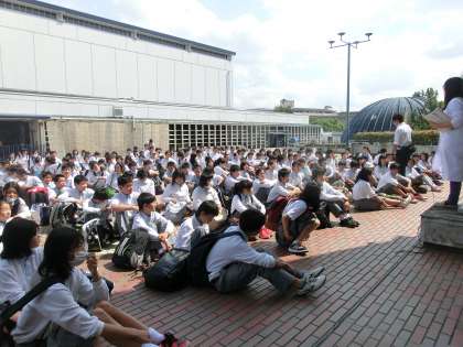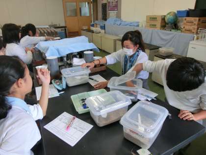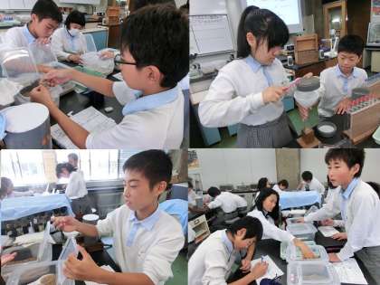 15日午後から,1年生は科学センターで学習をしました。1組と4組は河川や海岸の砂についての学習です。