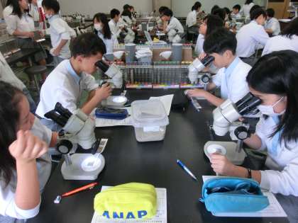 川と海での粒の粗さの違いや,海岸では生物(貝殻など)の死骸が長い年月を掛けて砂粒のようになっていることも学びます。