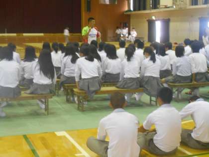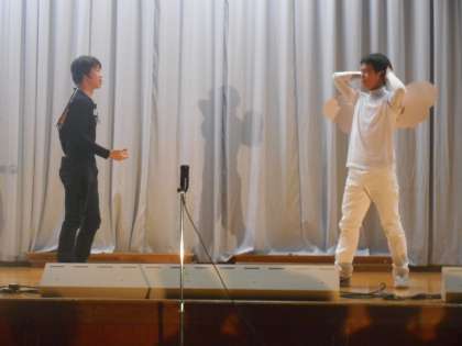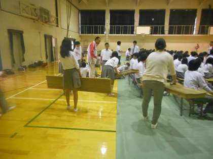 午後からは文化祭の準備とリハーサルです。体育館の準備が整い,午後1時にリハーサルが始まりました。展示作品も同時進行で4号館の廊下や1・2階の美術室に掲示されていきます。