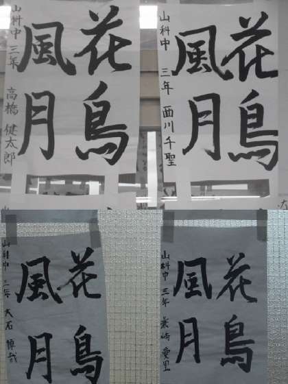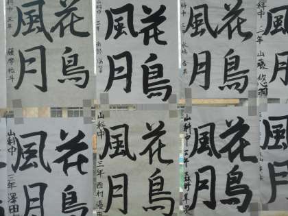 3年生の書写は「花鳥風月」です。文字が増え,字の整いや力強さだけでなく,全体のバランスも重要なようです。