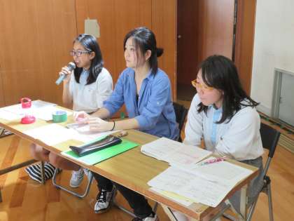 1・2年生は共同で,「飛び出しうさぎとゆっくりかめ」の制作について。3年生は修学旅行と各クラスのデジタルアートの紹介です。