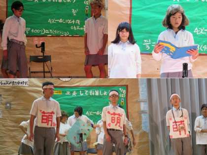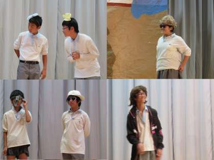 ストーリーよりもめまぐるしく変わる登場人物に目を奪われましたが,1年生らしい元気のある楽しい劇でした。