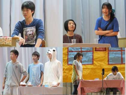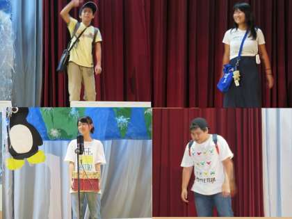 さすがに3年間劇に取り組んできた3年生だけあって、よく通る声でしっかり台詞が言えていました。「忘遠郷」は学校劇でよく使われる脚本ですが,一つ一つの台詞からもストーリーがしっかり伝わってきました。