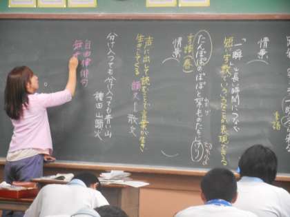 3年4組の国語のようすです。今日は種田山頭火の句を使っての授業です。