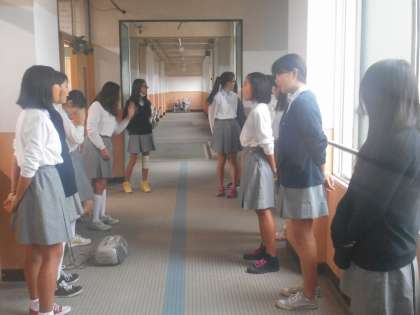 2年1組は男女とも揃って意気込みを感じる練習です。3階の廊下では3組の女子が練習をしています。