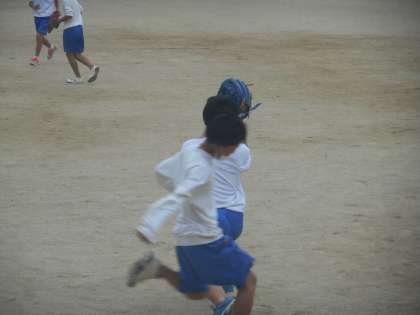1・2組の男子のソフトボールのようすです。ヒットや好守備,またクロスプレーもありで盛り上がっています。