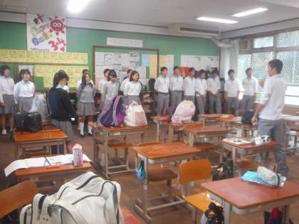 3年4組は指揮者を前に立てて全体での練習です。いい表情で歌っています。