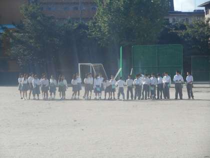 3組、4組の男子パートの練習です。グラウンドに出ているのは1年5組です。